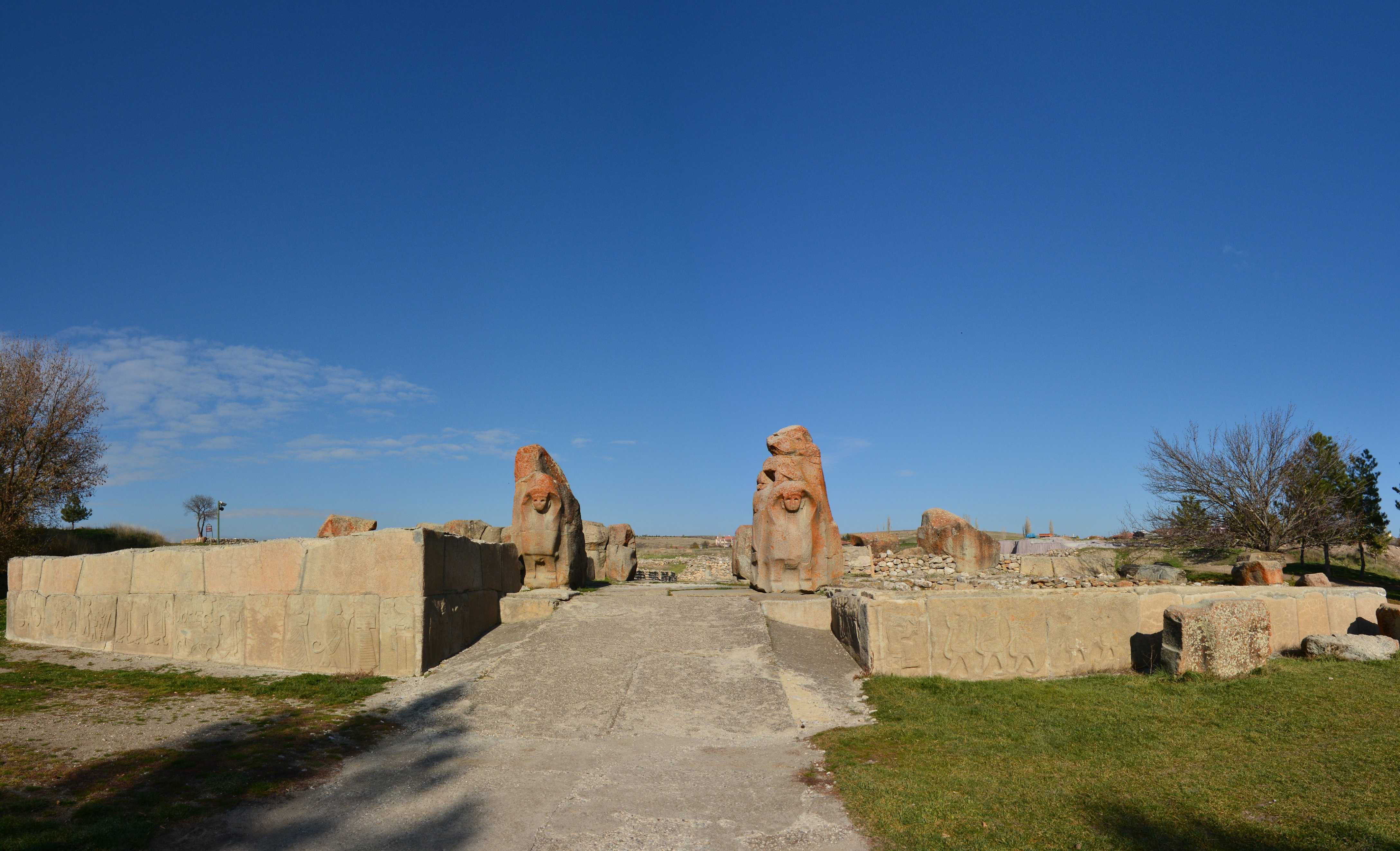 Alacahöyük, Tunç Çağı ve Hitit döneminin önemli bir dinsel tören ve sanat merkezidir. Ören Yerinde görülebilecek olan kalker temel üzerine andezit bloklarla inşa edilmiş olan sfenksli kapının genişliği 10 metredir. Büyük mabede bağlanan yol üzerindeki bu anıtsal kapı Ören Yerinin en ilgi çeken yapısıdır.