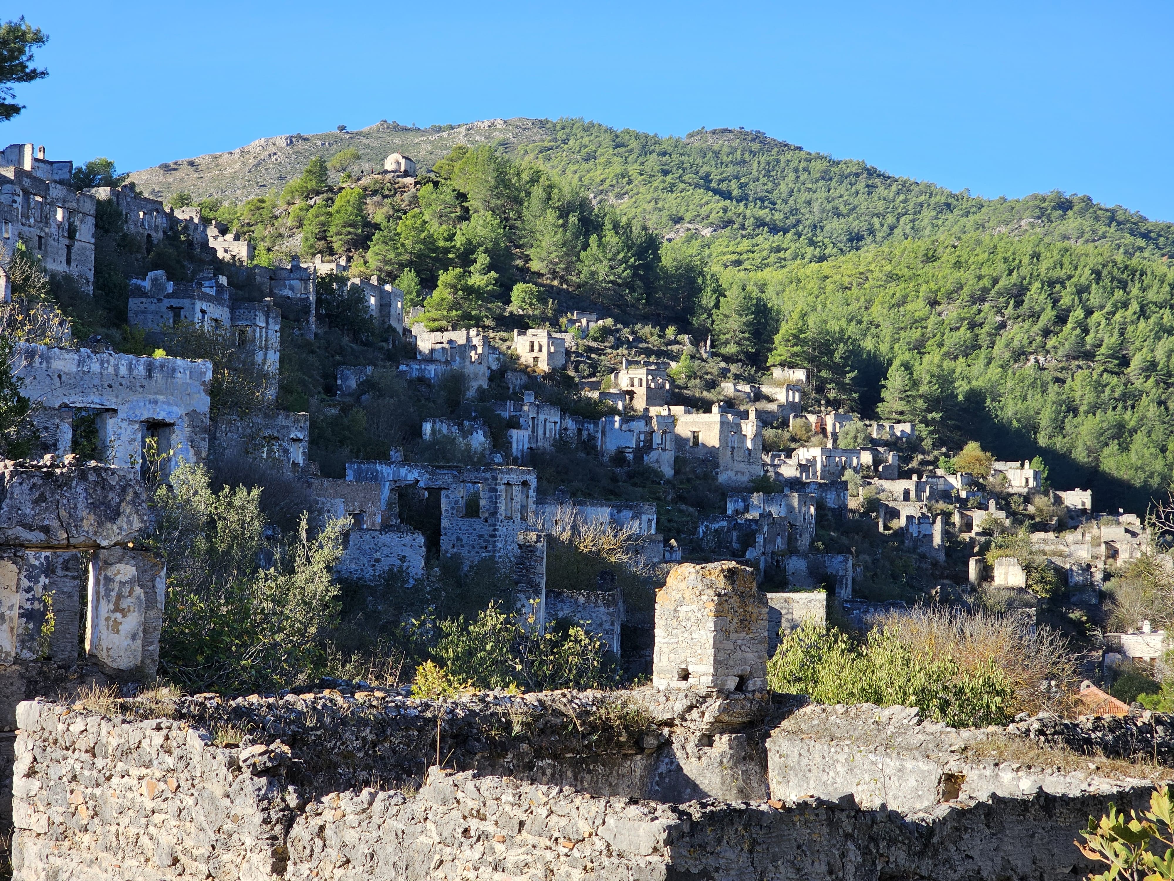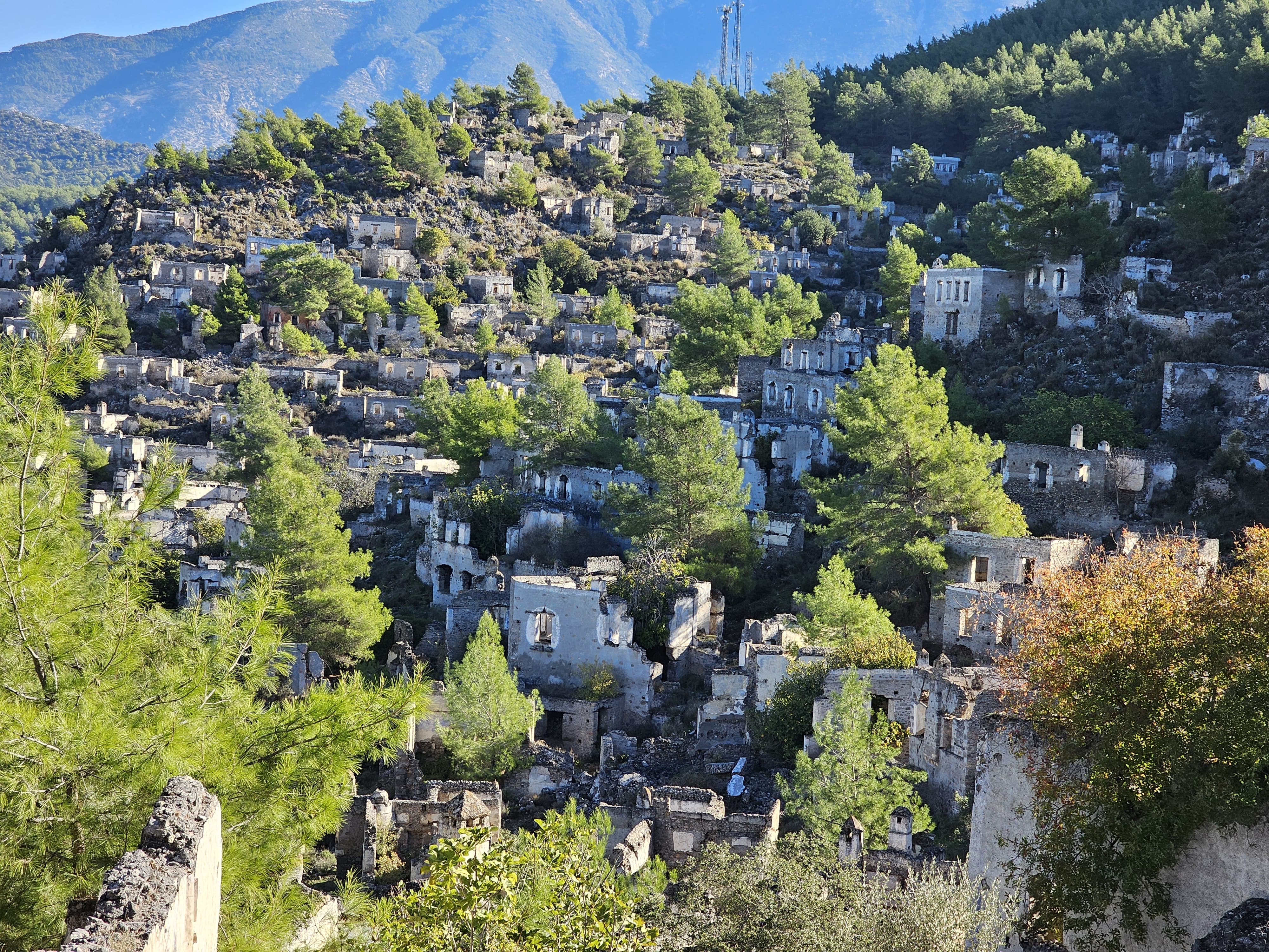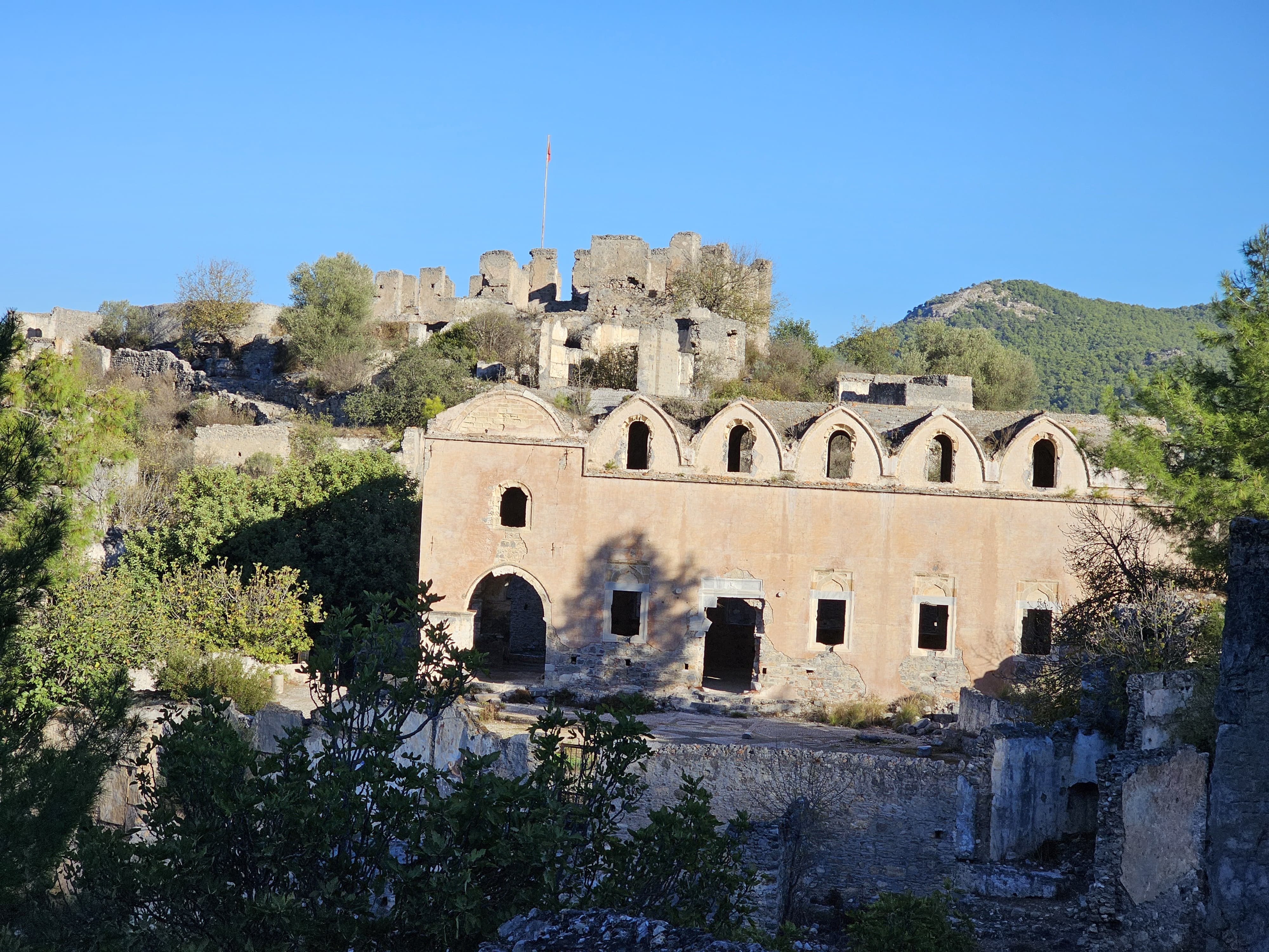 Kayaköy'de ayrıca her biri 50 m² büyüklüğünde, manzara ve ışık açısından birbirinin önünü kapatmayan, genellikle alt katları kiler olarak kullanılan, girişte çatıdaki yağmur sularının toplandığı zemin altı sarnıçlarına sahip ikişer katlı 350-400 konut var. Bu evlerin arasına serpiştirilmiş çok sayıda şapel, iki büyük kilise, bir okul binası ve bir gümrük binası da ziyaret edilebiliyor.