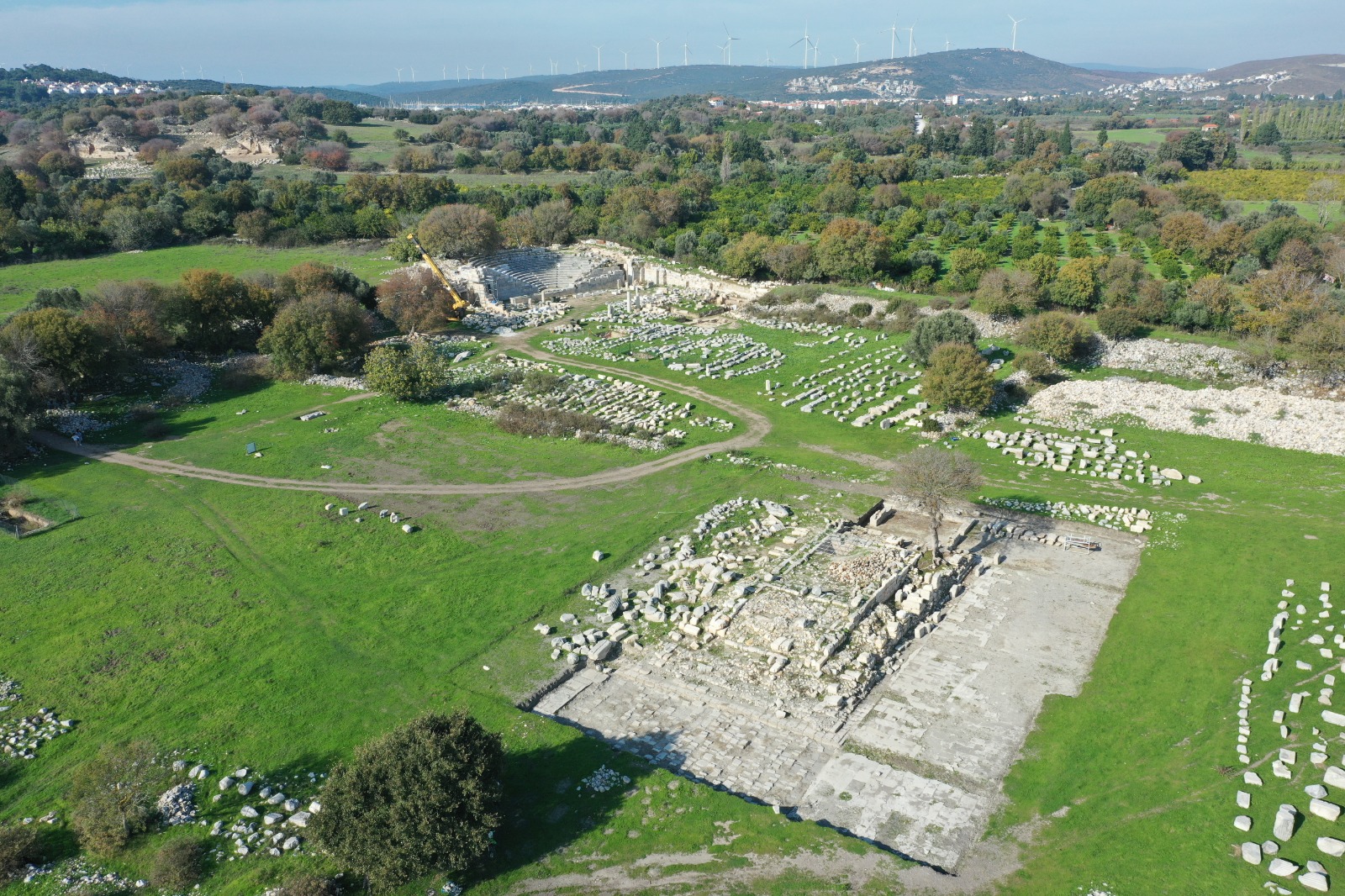 İzmir İli, Seferihisar İlçesi, Sığacık Mahallesi’nde yer alan antik liman kenti Teos, İzmir’in yaklaşık 60 km güneybatısındadır. Kent, Isthmos adı verilen küçük bir yarımada üzerinde kurulmuş ve gelişmiştir. Yarımadanın ortasında yer alan Kocakır Tepe üzerinde kentin akropolü yükselmektedir. Akropolün kuzey ve güneyinde birer limanı bulunan Teos, akropol ile güney liman arasında gelişmiştir. Bu alanı, çok iyi korunmuş durumda olan ve yaklaşık 6 km uzunluğundaki Hellenistik Dönem kent suru çevrelemektedir. Hellenistik Dönem kent suru dışında kalan akropolün kuzeybatısındaki sırtlar Geometrik ve Arkaik Dönem; güney ve güneybatısındaki sırtlar ise Hellenistik ve Roma Dönemi nekropol (mezarlık) alanı olarak kullanılmıştır.